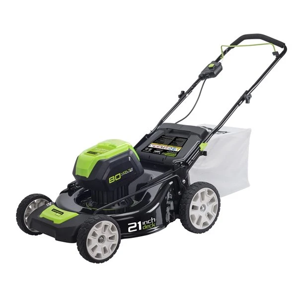Greenworks, 1-battery fits all Pro 80-volt system includes over 20+ tools to choose from. Any tool, any time, Greenworks has you covered. The commercial grade Pro 80-volt system is perfect for the professional and those yard warriors wanting more power. Great for yards up to 1 acre with a battery runtime of up to 60 minutes. The Greenworks 21 inches cordless lawn mower features a durable steel deck, large 10 inch rear wheels, smart cut and load sensing technology. Light weight, it is easy to use and features an all-wheel single lever height adjustment.